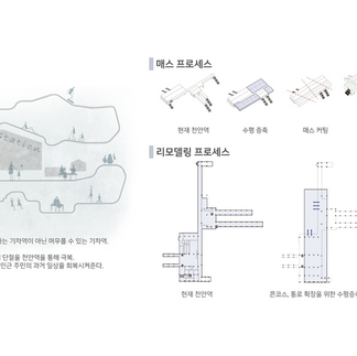 현재 천안은 신도시의 부흥으로 인해 원도심은 쇠퇴했다. 원도심의 중심, 천안 시민들의 일상을 책임지던 천안역 일대는 1990년대의 모습은 찾아볼 수 없다. 천안역을 리모델링 하며 원도심의 회복, 도시재생을 목표로 한다. 지상철로로 인한 동, 서의 단절을 연결하고 무차별적인 고층화가 아닌 원도심의 도시조직을 받아들여 저층화와 골목을 연상시켜 머무를 수 있는 천악역으로 재탄생시키고 천안 시민들의 일상을 다시 불러 일으켜준다.